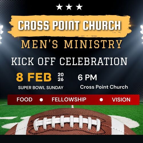 Guys, mark your calendars! We're relaunching a Men's Ministry at Cross Point with a Super Bowl Party on Sunday, February 8 at 6:00 PM.