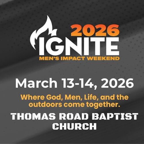 Guys, get ready for an incredible weekend! We're heading to Ignite 2026 on March 13–14 at Thomas Road Baptist Church in Lynchburg, Virginia—where God, men, life, and the outdoors come together for an unforgettable experience.